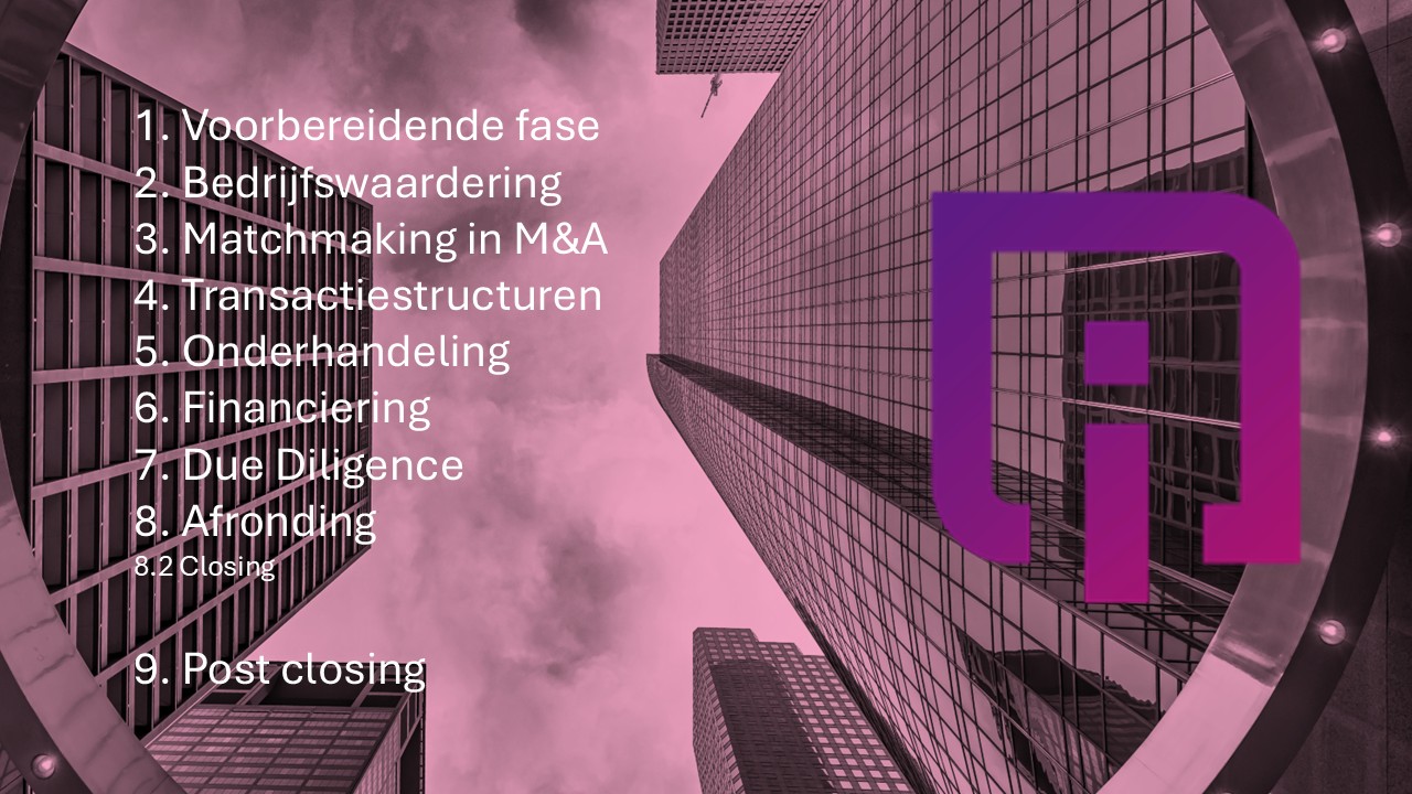 Na maanden van voorbereiding, onderhandelingen en juridische afstemming komt de transactie uiteindelijk tot een afsluiting, de closing. Dit is het moment waarop de feitelijke overdracht van aandelen of activa plaatsvindt en de koper juridisch eigenaar wordt van de onderneming of de geselecteerde onderdelen daarvan. Voor de verkoper betekent dit vaak een belangrijke mijlpaal, omdat (een deel van) de ontvangen koopprijs beschikbaar wordt gesteld en het financiële deel van de transactie definitief wordt afgerond.