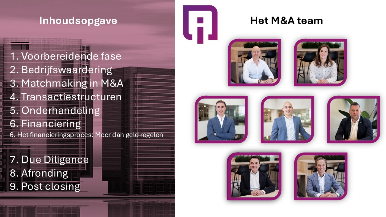 Het financieringsproces is meer dan het “regelen van geld”; het is een strategisch onderdeel van de deal. Een doordachte financieringsstructuur maakt het verschil tussen een haalbare transactie en een stukgelopen overnameproces. Door tijdig te plannen, realistisch te rekenen en de juiste mix van financieringsbronnen te kiezen, wordt de kans op een succesvolle deal aanzienlijk vergroot.