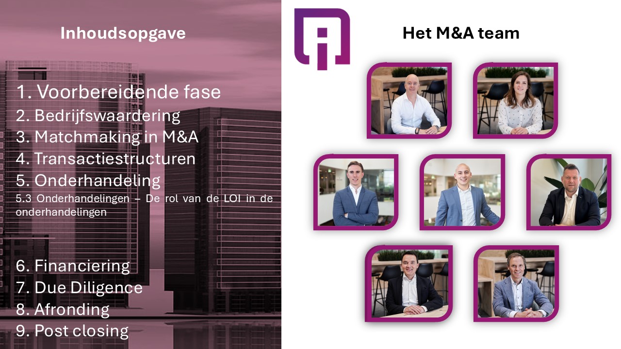 De intentieverklaring is niet slechts een formaliteit, maar een cruciaal onderhandelingsinstrument. Door de LOI slim in te zetten, krijgen de onderhandelingen structuur: kernpunten zijn geborgd, discussies worden in de juiste volgorde gevoerd en beide partijen weten waar ze aan toe zijn. Daarmee vergroot de LOI niet alleen de dealzekerheid, maar ook de kans op een soepel en succesvol vervolgtraject.