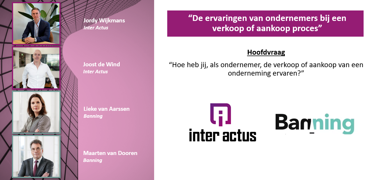 In gezamenlijkheid met Lieke van Aarssen en Maarten van Dooren van Banning Advocaten voeren Joost de Wind en Jordy Wijkmans een onderzoek uit naar de ervaringen van ondernemers bij de verkoop of aankoop van een onderneming.