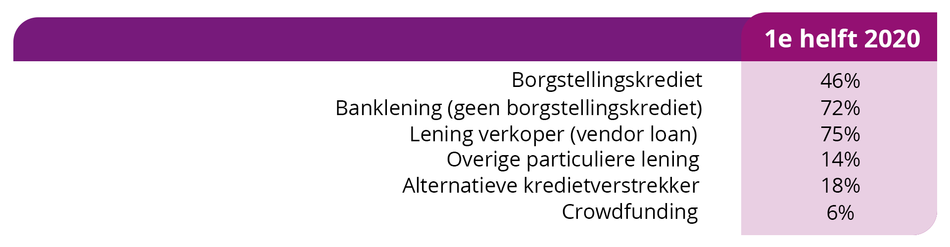 In lijn met de verwachting wordt de meerderheid van de transacties nog steeds gefinancierd met vreemd vermogen, waarbij de vendor loan de meest voorkomende financieringsbron is.